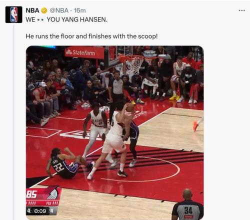 中国球员杨瀚森在第三节迎来爆发,单节5中5独得14分。杨瀚森的出色表现也引起了NBA官方社媒的关注,连续更新三条有关杨瀚森的精彩视频。