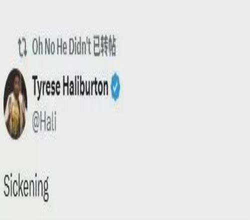 因右脚跟腱撕裂本赛季报销的步行者当家球星哈利伯顿,直言不讳点评了该场比赛,在个人社媒上写道:“令人作呕。”